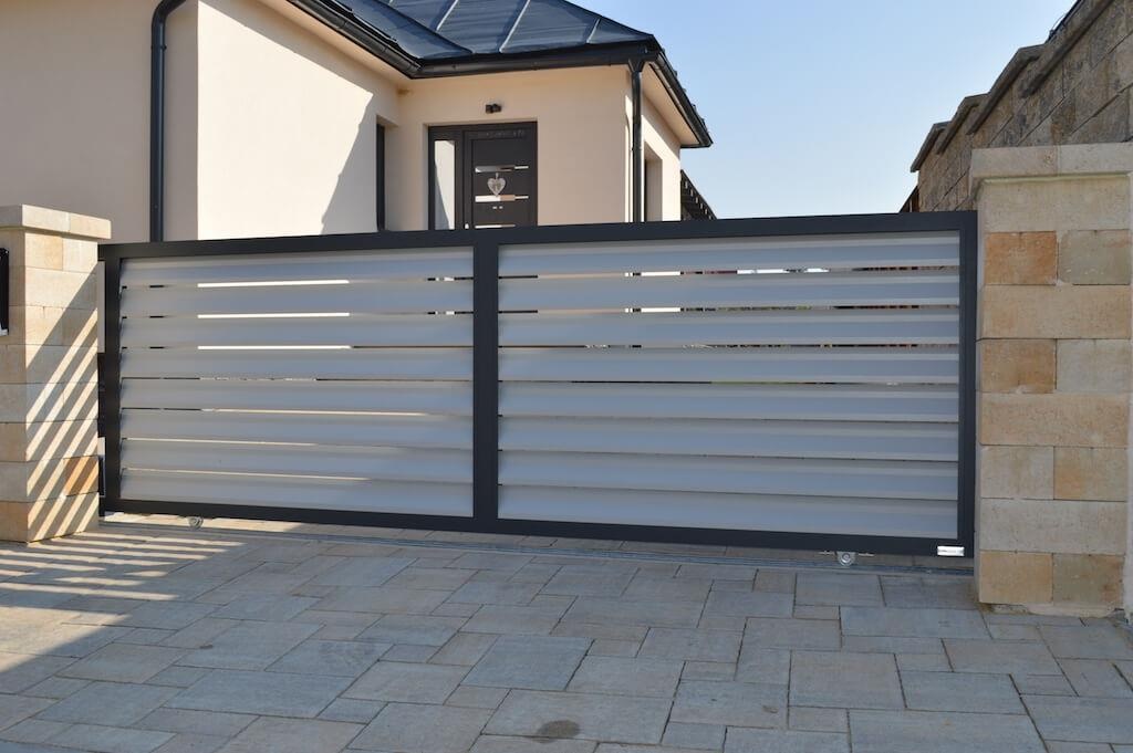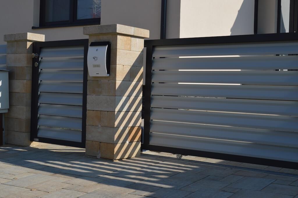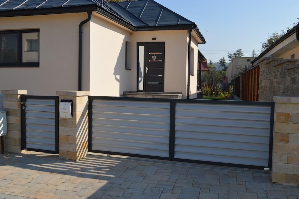 In 2017, we supplied a complete modern aluminium house fence. The order included an entrance gate and a front gate that we installed near Košice in the Slovak Republic. The customer chose aluminium panels NOVA125 with smaller gaps, a darker frame colour RAL7016 (FSM) and aluminium panels RAL7040 (FSM). A different colour of the panels and the frame is without any surcharge provided that you chose standard colours. How do you like this project? |